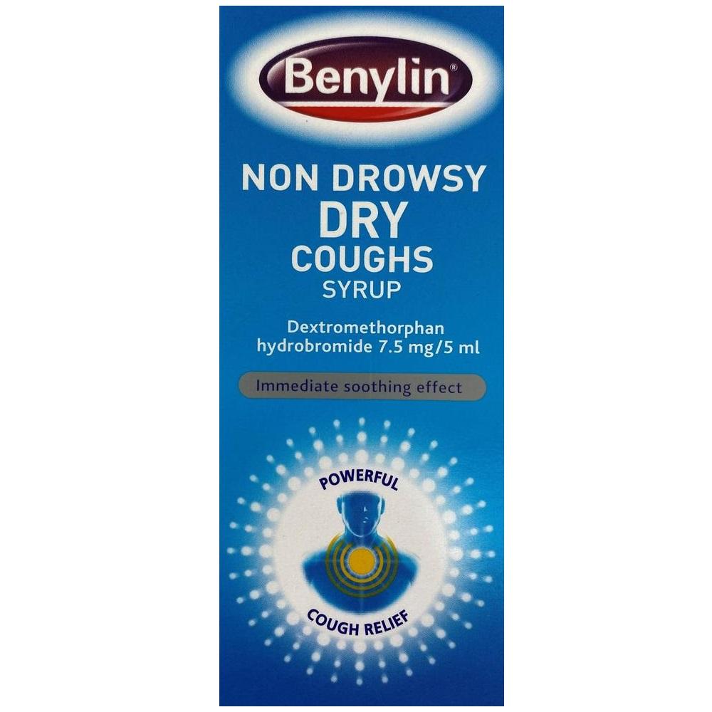 Benylin Dry Non-drowsy 125ml helps to relieve dry coughs. The active ingredient dextromethorphan helps to stop persistent coughing. Each 5ml of cough syrup contains Dextromethorphan hydrobromide 7.5mg.