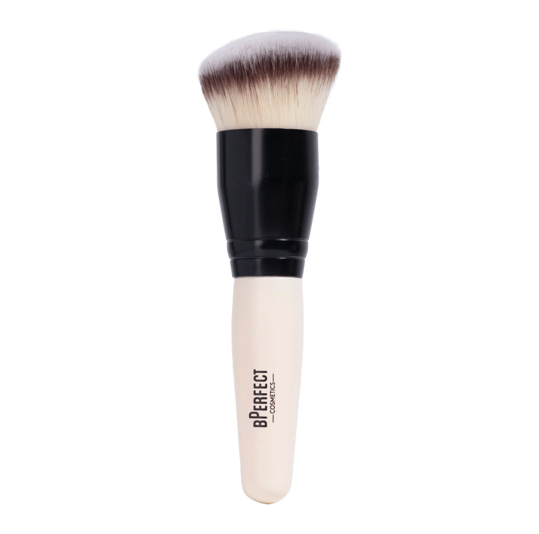 A dense angled kabuki brush, perfect for effortlessly blending cream and powder products to add shadows and contour to the face.