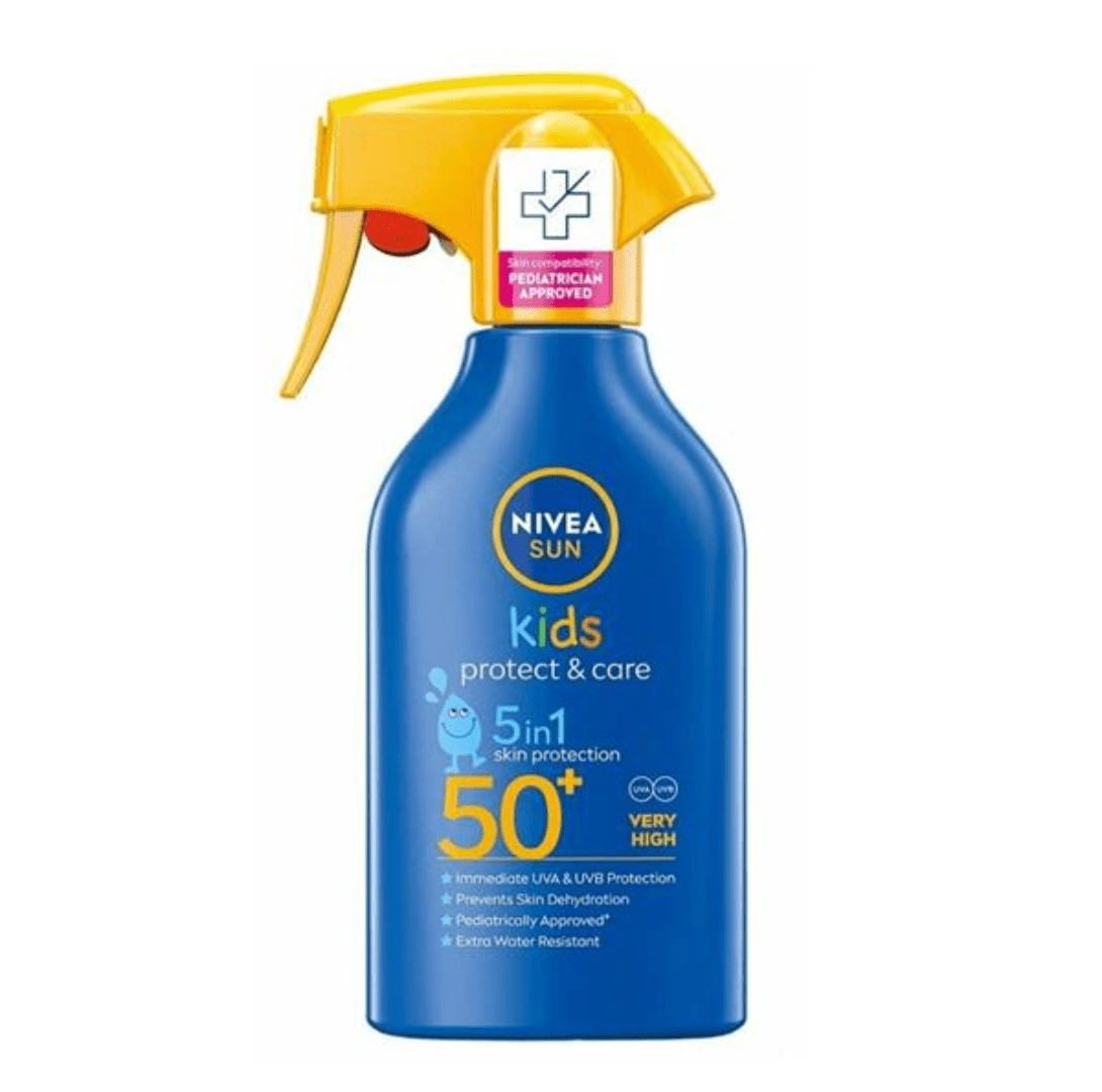 NIVEA SUN Kids Protect & Care Trigger Spray provides children with highly effective SPF 50+ protection against sunburn and sun-induced skin damage. After application, the caring and moisturising lotion immediately protects against sun exposure and long-term UV-induced skin damage and helps to reduce the risk of sun irritations. The sunscreen offers instant UVA/UVB protection and has an extra water-resistant formula for all the splashing around! The sunscreen comes in a trigger spray format to ensure for a fun and easy application. The skin compatibility of this sunscreen has been dermatologically proven. It is important to keep your babies and young children out of direct sunlight – no matter the SPF. Protect the whole family with our Adults and UV Face Range too! To complete your summer care routine, try our After Sun range.