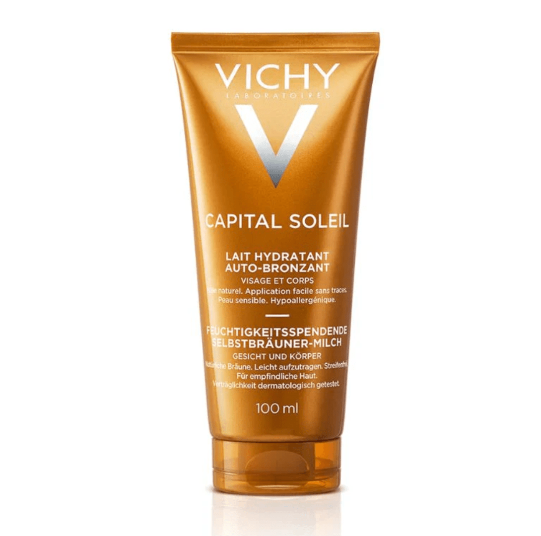 VICHY CAPITAL SOL SELF TAN MILK 100ML is a gradual tan with frequent use, contains moisturising properties. It is formulated for all skin types, this moisturizing milk provides the woman with a uniform tan and moisturizes deeply for 8 hours.