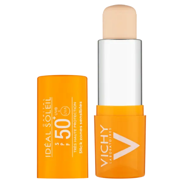 Vichy ideal Soleil Stick SPF 50+ protects the skin against the harmful effects of the sun. Designed for sensitive areas of the face and body, it includes a wide spectrum filter system and photostable UVA-UVB based Mexoryl ®